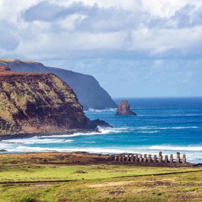 Un viaggio che offre paesaggi unici al mondo: laghi salati dalle candide superfici increspate su cui i fenicotteri sembrano danzare, geyser fumanti che all’alba paiono magici giochi d’acqua, surreali valli lunari, ammorbidite da dune di sabbia dove brillano cristalli di gesso, canyon dalle pareti rosate, cactus giganti, letti di fiumi con una verde moquette di bofedal (vegetazione muschiosa galleggiante) dove pascolano lama e vigogne. Il Deserto di Atacama, incastonato tra la cordigliera delle Ande e le spiagge bianche dell’Oceano Pacifico, in una regione ricca di minerali e di bellezze naturali. L’Isola di Pasqua, minuscolo lembo di terra, uno dei posti più isolati del mondo. Con le sue enigmatiche statue, i ben noti “moai”, l’Isola di Pasqua (Rapa Nui per i suoi abitanti polinesiani) emana un’aura di misterioso fascino.